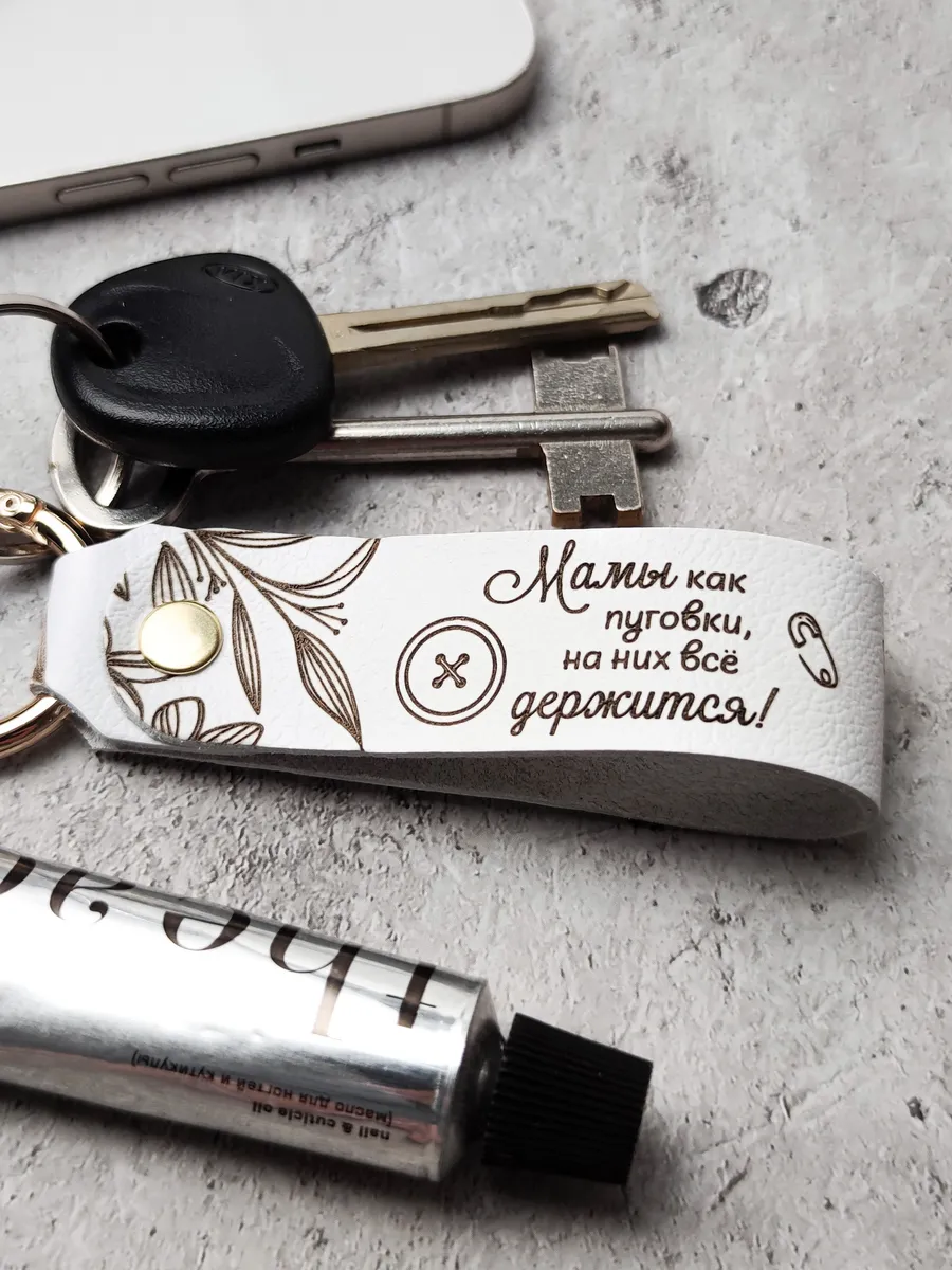 Брелок кожаный "Мамы как пуговки" - это стильный и практичный аксессуар, который станет прекрасным подарком для любимой мамы. Изготовленный из качественной кожи, брелок отличается своей долговечностью и элегантным дизайном. На его поверхности нанесена гравировка с изображением цветов и растений, что придает ему особый шарм. Брелок оснащен надежным карабинным замком, который удерживает ключи. Этот милый и полезный подарок станет приятным сюрпризом для мамы в день рождения, на новоселье или просто так, как знак внимания и любви.